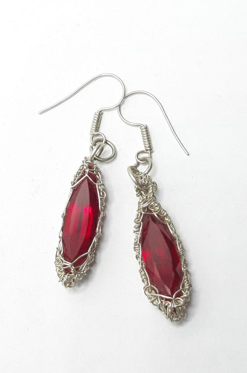 orecchini in argento puro realizzato a mano con tecnica a maglia impreziosito da cristalli di tormalina, anallergici.